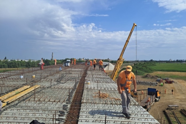 Săptămâna trecută, pe șantierul centurii Timișoara Sud, au continuat lucrările de așternere a straturilor de asfalt (de bază, de legătură și de uzură), amenajarea intersecțiilor și a girațiilor, montarea panourilor fonoabsorbante, amenajarea spațiilor de parcare, taluzarea, realizarea șanțurilor și rigolelor, construirea zidurilor de sprijin și lucrările la pasajele de pe traseu.