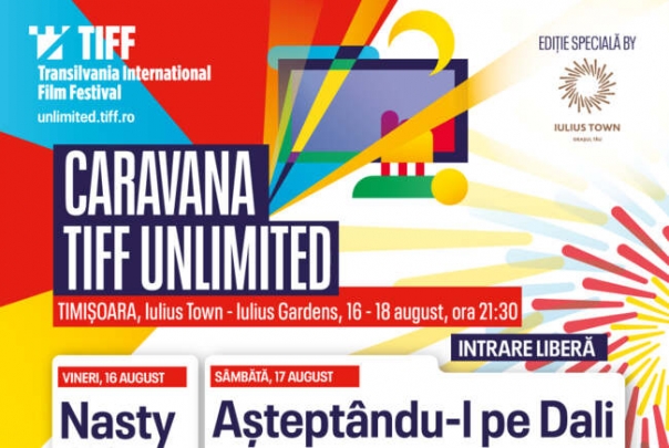 În perioada 16-18 august 2024, marele ecran al Caravanei TIFF Unlimited va fi amplasat în Iulius Gardens, iar cinefilii sunt invitați să se bucure de proiecții în fiecare seară, începând cu ora 21:30. Intrarea este gratuită.