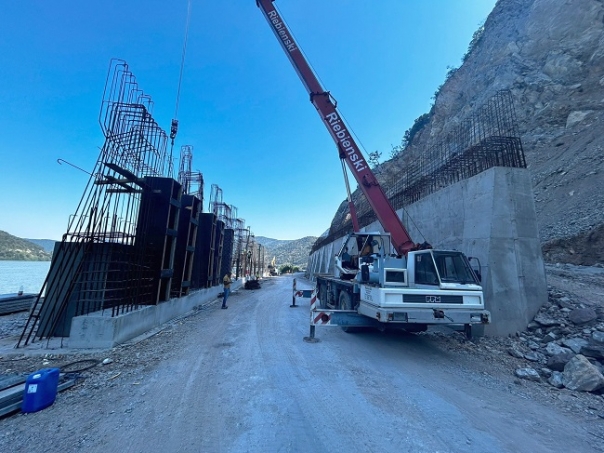 În județul Caraș-Severin sunt programate: DN 68 Caransebeș – Oțelu Roșu – așternere covor asfaltic; DN 67D Băile Herculane – Valea Cernei – consolidare drum; DN 57 Berzasca – construire polată pentru protecția drumului de căderile de pietre de pe versant (foto); DN 58B Măureni – reparații podeț; DN 58A Fârliug – consolidare zid de sprijin.
