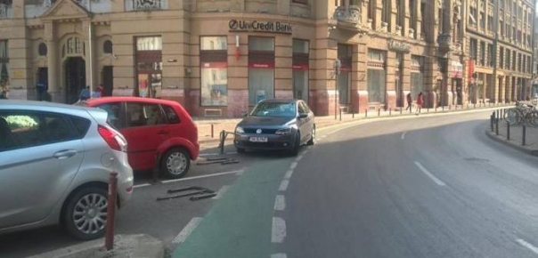 Au crezut ca au marcat parcarea si si-au lasat masinile cu tupeu pe una dintre cele mai noi piste de biciclete din centrul orasului. Vorbim despre soferii care continua sa parcheze in fata Spitalului Militar, acolo unde muncitorii contractati de primarie au amenajat, in noaptea de miercuri spre joi, un traseu special pentru biciclisti, cu dublu sens. Politia Locala ameninta cu amenzi, scrie