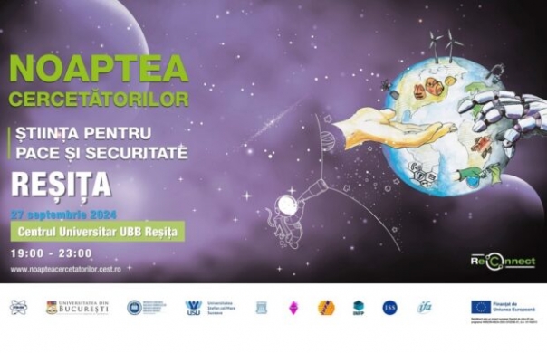 Centrul Universitar UBB Reșița dă startul evenimentului „Noaptea Cercetătorilor” pe 27 septembrie! Participanții vor avea ocazia să exploreze, timp de patru ore, diverse demonstrații și prezentări din domeniile ingineriei, economiei și științelor sociale, alături de jocuri și discuții despre securitatea umană.
