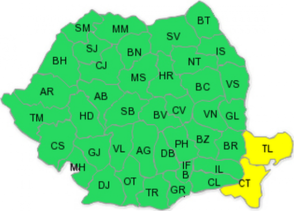ploi insemnate cantitativ, valabila in intervalul 3 iulie, ora 20:00 – 4 iulie, ora 20:00. Va ploua pe arii extinse in regiunile din sud-estul tarii, iar in Dobrogea cantitatile de apa vor depasi 25 l/mp si local se vor cumula peste 50 - 70 l/mp. Vantul va avea intensificari sustinute, cu viteze larafala de 60 - 65 km/h. Instabilitatea atmosferica se va manifesta local in sud-estul teritoriului si in dupa-amiaza zilei de 3 iulie, iar cantitati de apa de peste 20 - 25 l/mp se vor inregistra izolat si in sudul Moldovei si in estul Munteniei.