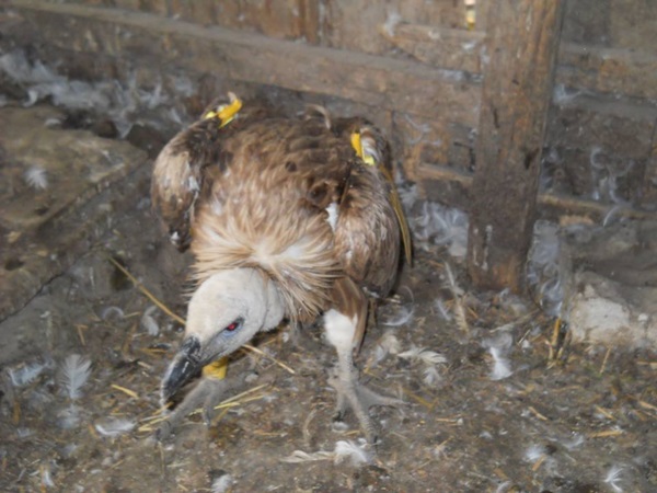 Razvan Isfan, un tanar din Unip, localitate aflata la cca 15 km sud-est de Timisoara, a descoperit vulturul luni dimineata, pe la ora 9. Epuizata si infometata, pasarea se prabusise pe camp si nu reusea sa zboare mai mult de cativa metri, mai sus de 60 cm. Tanarul a invelit vulturul intr-un tricou, l-a dus acasa, l-a hranit, l-a ingrijit si a incercat, pe toate caile, sa-i gaseasca stapanul. Dupa ce a mancat un cocos intreg, cativa soareci si mai multe maruntaie de pasare, vulturul a dat semne clare de inzdravenire.