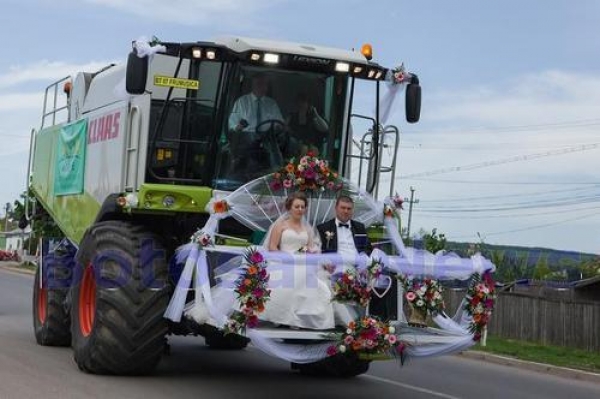 In vreme ce unele cupluri platesc pentru ca in ziua nuntii sa fie transportate cu limuzina, doi tineri din judetul Botosani au avut parte de o surpriza. Andrei Rebenciuc si Adriana Cuibar au fost dusi la Primarie si la Biserica, pentru oficierea cununiei civile si religioase, cu o combina, relateaza presa locala.