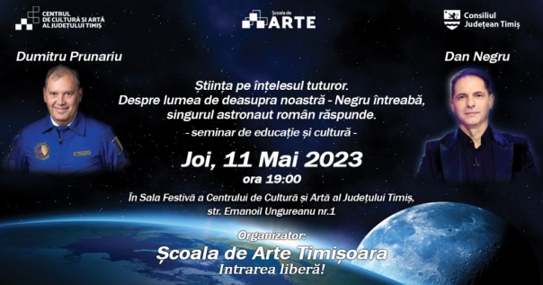 Seminarul va avea loc în Sala Festivă a Centrului de Cultură și Artă al Județului Timiș, joi, 11 mai 2023, de la ora 19:00. Prin intermediul acestui seminar, publicul va avea ocazia să afle informații extrem de interesante despre experiența în spațiul cosmic a lui Dumitru Prunariu, dar și despre orizonturile de astăzi ale cunoașterii. Dumitru Prunariu s-a născut pe 27 septembrie 1952 în orașul Stalin din România și este singurul cosmonaut român care a zburat vreodată în spațiul cosmic. La 14 mai 1981, el a participat la misiunea SOIUZ 40 din cadrul programului spațial „Intercosmos” și a petrecut în spațiu 7 zile, 20 de ore și 42 de minute. De profesie, Dumitru Prunariu este inginer aeronautic și a ocupat diverse poziții în cadrul industriei aeronautice și spațiale, precum ofițer inginer în cadrul Comandamentului Aviației Militare, șef al Aviației civile române, președinte al Agenției Spațiale Române, ambasador al României în Federația Rusă, președinte al Comitetului ONU pentru Explorarea Pașnică a Spațiului Extra-atmosferic (UN COPUOS), președinte al Asociației Exploratorilor Spațiului Cosmic (ASE) și vice-președinte al Comitetului de Relații Internaționale al Agenției Spatiale Europene (ESA). În prezent, el are gradul de general-locotenent în rezervă și a fost decorat cu importante distincții de-a lungul timpului, devenind membru de onoare al Academiei Române.