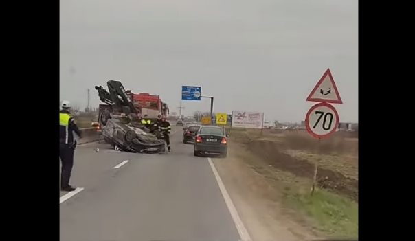 Joi dimineața, în apropierea sensului giratoriu de la MAHLE, lângă Timișoara, a avut loc un accident de circulație pe drumul E671. Conform primelor informații, un autoturism a ajuns răsturnat pe carosabil, cu roțile în sus, după ce a intrat în coliziune cu un alt vehicul. Șoferul unei autoutilitare, care se deplasa pe banda 1, a încercat să schimbe banda fără a se asigura corespunzător și a lovit autoturismul, provocându-i răsturnarea.