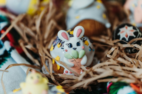 Sursa foto: https://unsplash.com/photos/a-bunny-figurine-sitting-on-top-of-a-pile-of-fake-eggs-9t1l8iKx1xA