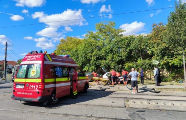 Patru persoane au fost rănite în urma unui accident produs într-o intersecție la ieșirea din Timișoara, joi dimineață. Șoferița în vârstă de 42 de ani se deplasa pe Vasile Georgevici, iar la intersecția cu strada Ovidiu Cotruș, a intrat în coliziune cu un microbuz condus de un tânăr în vârstă de 21 de ani.