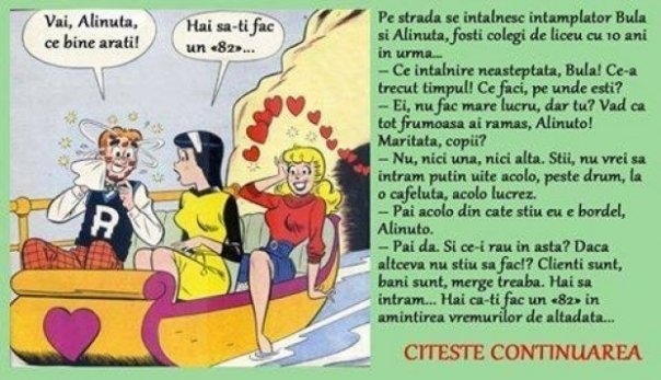 Pe strada se intalnesc intamplator Bula si Alinuta, fosti colegi de liceu cu 10 ani in urma…