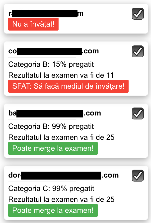 Conform ultimelor declaratii, s-a putut observa ca majoritatea persoanelor din tara care au accesat aceasta platforma, au luat examenul de categorie cu punctaj maxim, daca au respectat recomandarile de pe site si aplicarea tuturor procedurilor de lucru.