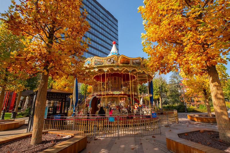 Cei mici se pot bucura de aer curat, dar și de distracție în Iulius Gardens. Caruselul venețian, aflat în centrul parcului, este împrejmuit de arbori și îi așteaptă pe copii de luni până joi, de la ora 12.00 până la ora 20.00, iar vineri, sâmbătă și duminică, de la ora 10.00 la ora 22.00. Nuanțele de auriu ale copacilor se împletesc cu design-ul unic al caruselului, creând o atmosferă de poveste. Seara, lumea basmelor este și mai aproape, prin jocul celor peste 1.500 de luminițe, dar și prin ceșcuțele care se învârt și căluții care se balansează.