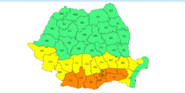 De asemenea, meteorologii au emis un cod portocaliu pentru caniculă și disconfort termic accentuat, valabil în aceeași zi, 24 iunie, în județele Dolj, Olt, Teleorman, Giurgiu, Ialomița, Călărași și Ilfov, precum și în municipiul București. În aceste zone, valul de căldură va persista, iar temperaturile maxime, deși puțin mai scăzute față de cele înregistrate în zilele anterioare, vor rămâne extrem de ridicate.